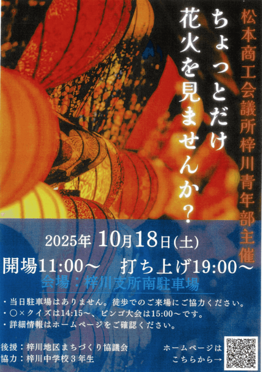 松本商工会議所梓川青年部PRESENTS、梓川地区で実施される花火大会に協力させていただきます。